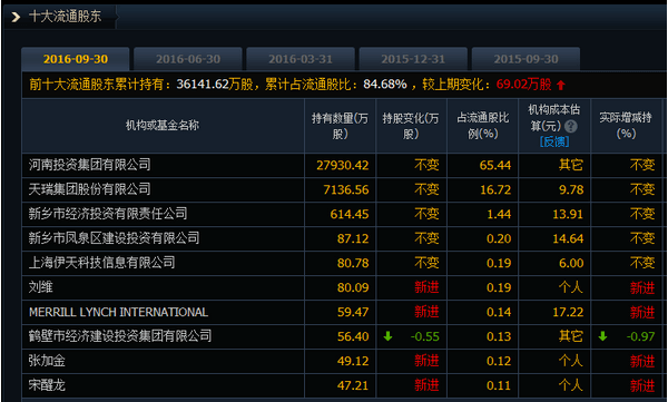 可以看到十大流通股東占84.68%,意味著其它流通股只有15.3%,今天的流通市值是73.4億,也就是除去十大流通股東,剩下的流通市值只有11.2億,游資機構就最喜歡這樣的票了。