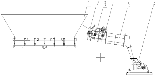 1、穩流倉 2、手動螺旋閘閥 3、氣動開關截止閥 4、流量調節閥 5、布風斜槽