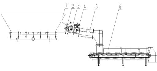 4、流量調節閥 5、布風斜槽 6、密閉皮帶式定量給料機