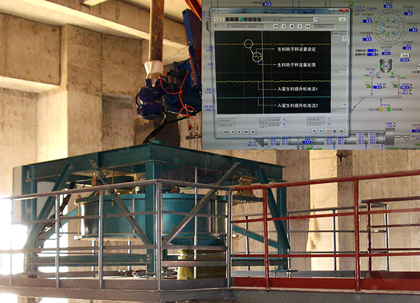 在運行曲線圖中,輪輻轉子秤的給定和反饋曲線基本重合,黃色曲線為提升機電流1反饋,青色曲線為提升機電流2反饋,由圖中曲線可知整個喂料流量跟蹤穩定、快速,提升機電流比較穩定。此外,該控制系統具有遠程診斷功能,我們可監控喂料系統使用情況,即時提供技術支持,系統運行實物和曲線圖如圖6所示。