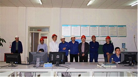 調(diào)研中,劉勇到公司中央控制室了解生產(chǎn)工藝,公司副總經(jīng)理馬超為其詳細(xì)講解公司的生產(chǎn)工藝流程。