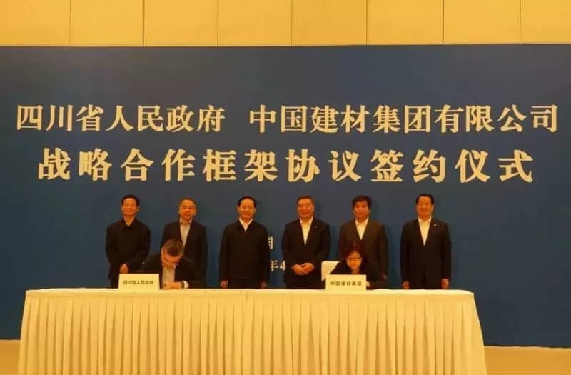 中國(guó)建材集團(tuán)集團(tuán)總會(huì)計(jì)師徐衛(wèi)兵和四川省副省長(zhǎng)朱鶴新代表雙方簽字。集團(tuán)紀(jì)委書(shū)記楊杰,四川省委常委、成都市委書(shū)記范銳平出席儀式。