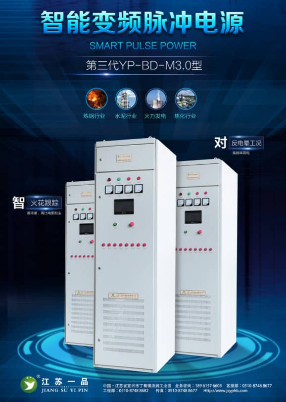 在確定選用電改電方案前,我們對除塵電源進行了專項考察,查閱了國內外先進的除塵電源技術,考察了國內多家除塵電源生產企業,經技術專業比較,多方論證,最終選擇了由江蘇一品環保研發生產的與國外先進除塵電源技術同步的“YP-BD-M型智能變頻脈沖電源”。