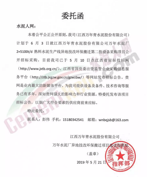 江西萬年青水泥招標公告
