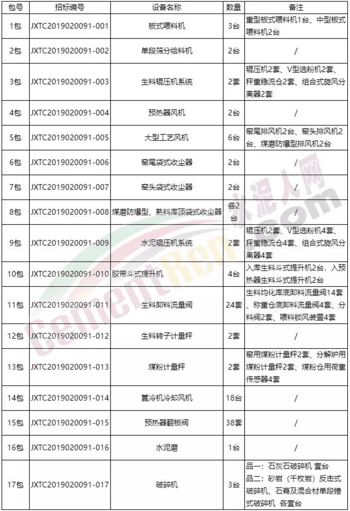 包3~包8、包10~包15:近十年(2009年1月1日以來)內投標人在中國大陸至少有兩個生產能力4000噸/天及以上熟料水泥生產線同類設備供貨(含改造)業績。