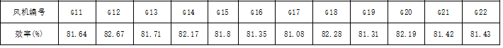隨著水泥窯線能耗指標要求的不斷提升,某大型水泥集團下屬重點企業決定對其兩條5000t/d熟料線的篦冷機進行四代機改造,其中一線篦冷機配套我司“睿暢”系列高效篦冷機冷卻風機。項目于2020年3月底安裝完成,窯線正常運行后對篦冷風機進行測試,實際運行效率均在81%--83%之間,見下表。