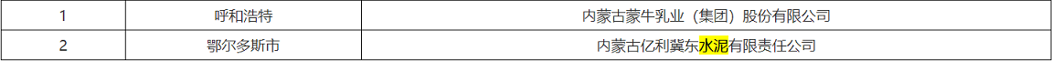 2021年(第二批)內蒙古自治區綠色制造示范名單
