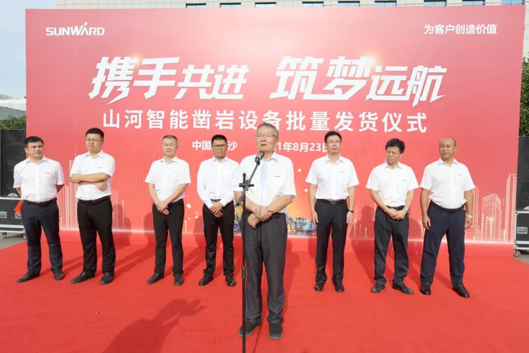 △山河智能董事長、首席專家何清華在發(fā)貨儀式上講話。