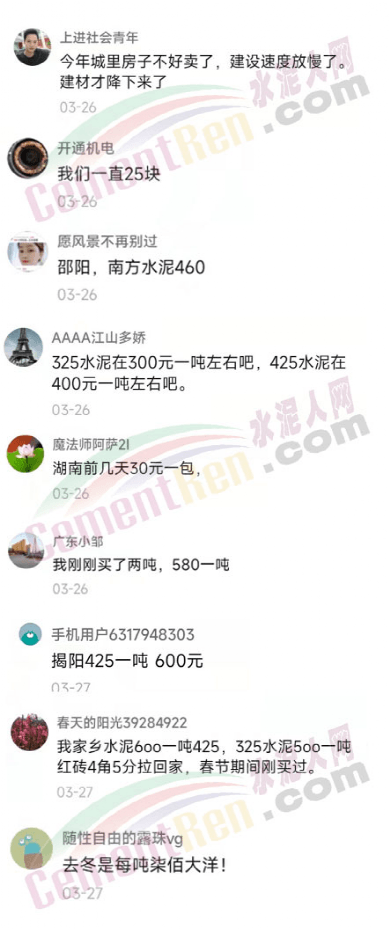 廣東水泥一降再降太嚇人了,如今農(nóng)村人紛紛提前準備蓋房了。廣東的水泥在今年3月25日大降價,32.5只要390元/噸,42.5水泥560元/噸。去年價格較高時42.5水泥賣1060元/噸,32.5水泥賣1000元/噸。年后水泥價格一降再降,到現(xiàn)在已經(jīng)降了600元/噸左右。