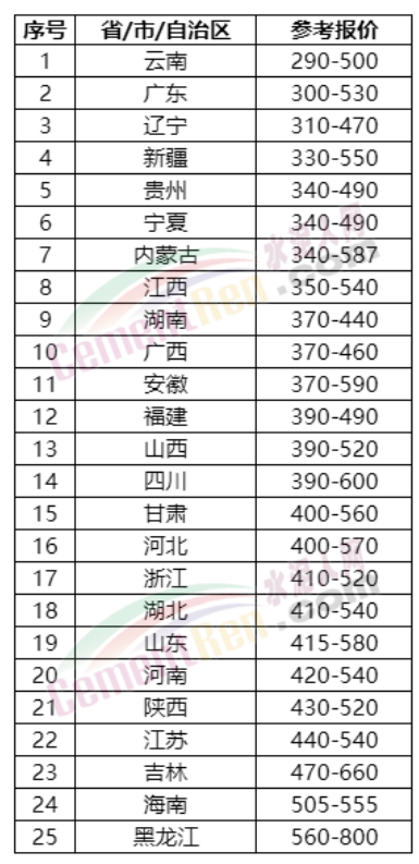 近期各區(qū)域P.O42.5散裝水泥參考報價