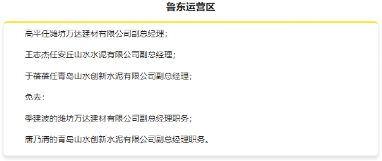3月22日晚間山水水泥發布公告稱,張繼武已獲委任為山東山水水泥集團有限公司總經理,自2022年3月22日起生效。