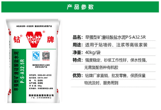 據查詢,鉆牌水泥官網報價顯示,P.S.A32.5R水泥凈含量40kg/袋,P.O42.5R水泥凈重45kg/袋。