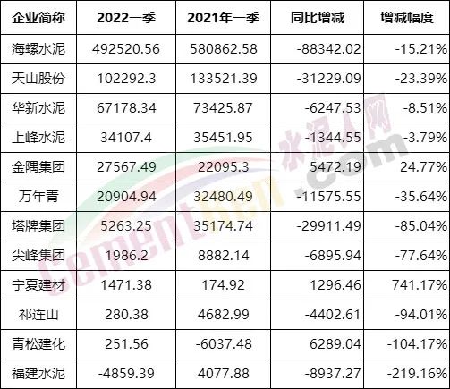 冀東、亞泰、福建“暴虧”!各大水泥廠利潤大比拼!