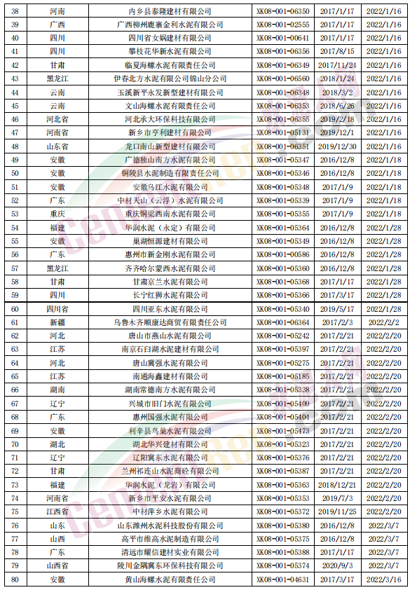 據查詢,市場監管總局工業品生產許可證辦公室數據顯示2022年到期的生產許可證共個575個編號,發證日期從2016年12月8日至2020年10月26日,有效期從2022年1月8日至2022年12月28日。其中2022年1-5月份到期的生產許可證共232個編號,5月份以后到期的水泥生產企業大約有300多家。