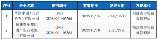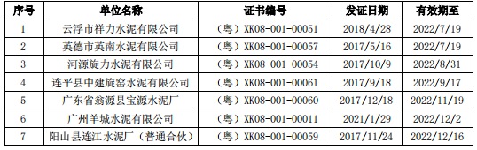 據查詢,河北、山東、廣東、浙江、福建、貴州六省市場監管局省級發證水泥行業生產許可證中,有15家企業生產許可證將于今年內到期。