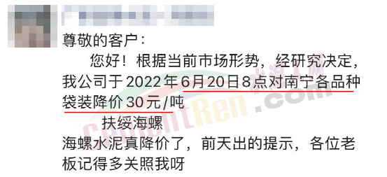 水泥人網通訊員消息,6月21日山東濟南、濟南、棗莊、臨沂、泰安等多區域水泥價格下跌20-30元/噸。同期,扶綏海螺水泥通知,6月20日8點對南寧各品種袋裝降價30元/噸。