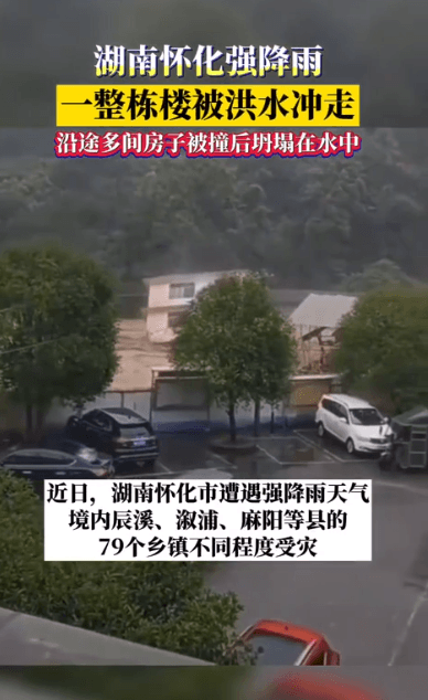 湖南持續降雨,懷化一棟樓被沖走