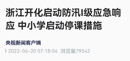 開化縣防汛防旱指揮部、突發地質災害應急指揮部決定從6月20日6時00分將防汛應急響應提升為Ⅰ級和維持地質災害Ⅳ級響應。根據防汛應急響應I級要求,為保障師生生命安全,全縣中小學(幼兒園)啟動停課措施,各校立即按照應急預案要求,通知家長告知學生暫緩來校并全面加強防汛安全教育和監管。