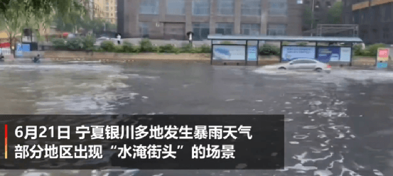 6月21日,寧夏銀川多地發生暴雨天氣,部分地區出現“水淹街頭”的場景。在降雨較為嚴重的地區,積水已沒到小腿,馬路變為“河道”,行車如“劃船”。當日18時22分,銀川市氣象臺升級暴雨橙色為紅色預警信號,這也是今年銀川發布的首個暴雨紅色預警。