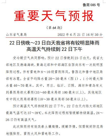 山東發重要預報:5市大到暴雨局部大暴雨;濟南連續三天有雨,局部暴雨。