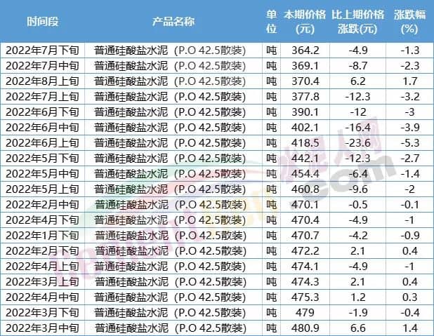 前不久出現(xiàn)了市場最低價,新疆博樂地區(qū)P.O42.5散裝水泥報價180元/噸,多個區(qū)域較上年同期暴跌200元/噸以上。