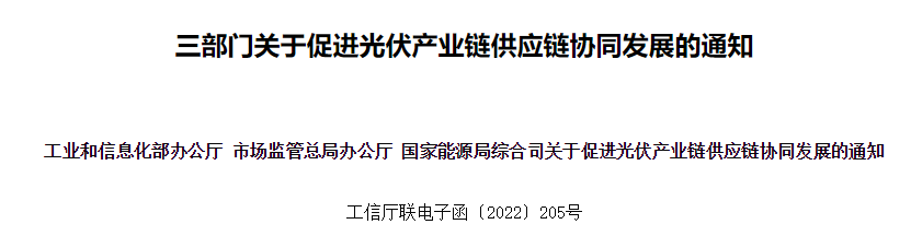 24日,工信部、國家能源局等三部門關于促進光伏產業鏈供應鏈協同發展的通知。通知指出,近期,光伏行業出現階段性供需錯配、部分供應鏈價格劇烈震蕩等情況,個別環節出現囤積居奇等苗頭,有的地方出現割裂市場、區域封閉等問題,亟需深化行業管理,引導產業鏈供應鏈協同創新。