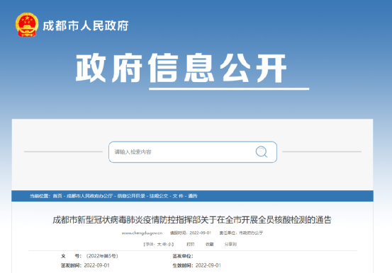 繼川渝地區高溫限電之后,疫情又卷土重來。日前,成都市新型冠狀病毒肺炎疫情防控指揮部發布關于在全市開展全員核酸檢測的通告。