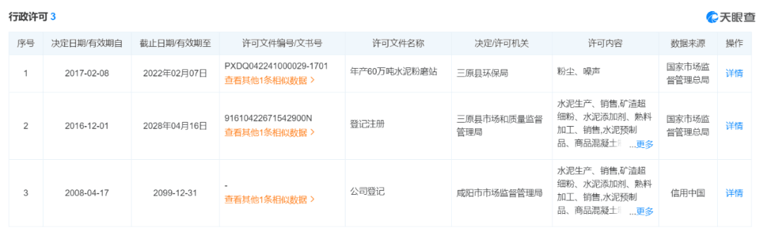 天眼查數(shù)據(jù)顯示,三原恒安建材有限責(zé)任公司, 成立于2008年, 位于陜西省咸陽市, 是一家以從事批發(fā)業(yè)為主的企業(yè)。企業(yè)注冊資本2000萬人民幣。通過天眼查大數(shù)據(jù)分析, 三原恒安建材有限責(zé)任公司擁有行政許可3條,未查到其相關(guān)生產(chǎn)許可證信息。