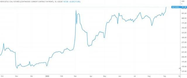 近期歐洲在海外市場搶購煤炭,疊加歐盟對俄煤炭禁運生效,多國開始轉向澳煤采購,澳大利亞煉焦煤離岸價在經歷持續下跌后開始上漲。