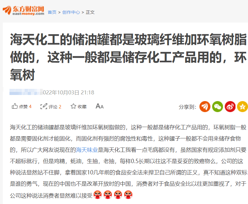 據了解,網傳某知名食品廠用的儲油罐是玻璃纖維加環氧樹脂做的,這種一般都是儲存化工產品用的,環氧樹脂一般都是需要固化劑才能固化,而固化劑有強烈的腐蝕性和毒性,這種罐子一般都不會用來儲存食物的。