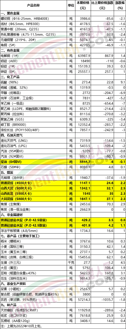 據水泥人網信息中心數據,上周五(21日)煤炭產地出臺新一期外購煤價,化工煤在21日至28日采購周期調漲煤價50元/噸。同時,受疫情、運輸、冬儲等方面原因,北港看漲情緒興起,中國電力企業聯合會發布的近期采購價格,北港5500大卡采購價格上漲23元/噸。