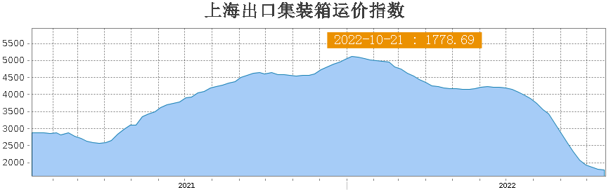 近日,上海航運交易所最新公布的集裝箱運價指數(SCFI)來到1778.69點,周跌35.31點。這是連續第19周下降。40英尺集裝箱在主要跨洋貿易航線上的加權平均貨運價格從3,483美元下跌2.9%至3383美元,上海至洛杉磯集裝箱運費創2020年11月以來的最低水平。