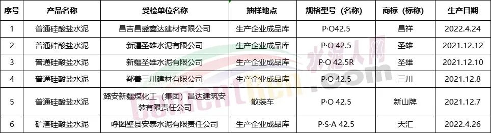 據通告,本次抽查的通用硅酸鹽水泥產品,在生產領域抽查了74家企業的90批次產品,檢出6批次產品不合格,不合格項目為氯離子。