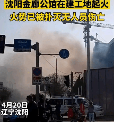 2022年4月20日早晨8點30分左右,遼寧省沈陽市沈河區青年大街北熱鬧路9號處的金廊公館一在建工地起火,現場濃煙彌漫,當時陣風達到7至8級。