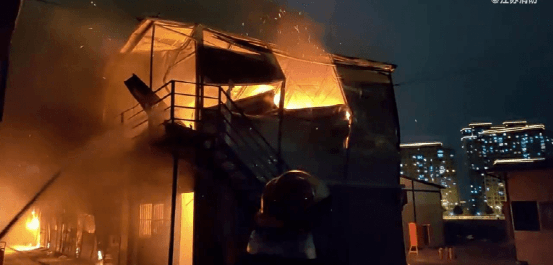 2022年3月6日,常州,一處工地宿舍起火,工人及時逃離。消防員趕到后發現,現場是一排兩層彩鋼瓦結構的簡易宿舍樓,彩鋼瓦在高溫的炙烤下已經發生變形,消防員一邊撲救,一邊大喊房子里的人撤離。