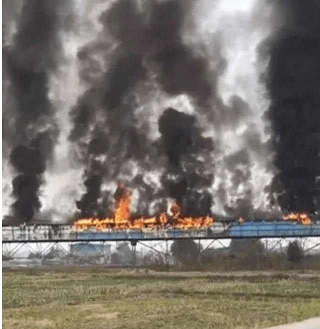 2022年2月13日,陜西涇陽某水泥廠員工電焊作業時不慎將火星掉落,隨后火星便點燃了水泥廠后面堆放的廢棄橡膠運輸帶起火。