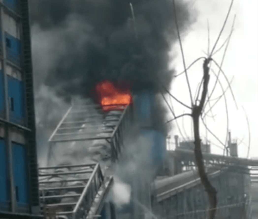 2017年12月30日上午十點五十分左右,四川綿陽某水泥廠輸送帶發生火險,現場數十條黑龍并排沖天。事故發生時一名員工從輸送帶跳下時受傷骨折。