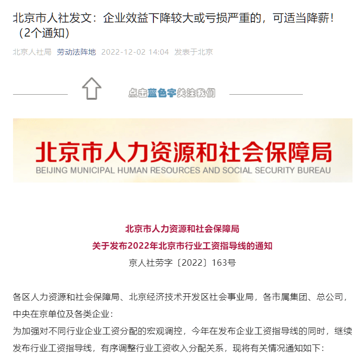 近日,北京市人社發文,企業效益下降較大或虧損嚴重的可適當降薪。