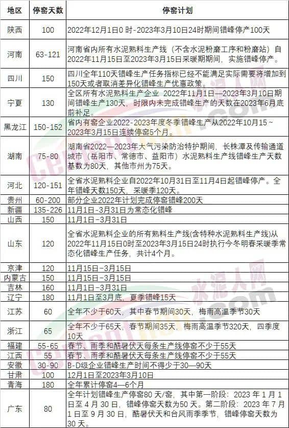 因協同失敗,水泥企業頻頻爆庫,不得不以加長錯峰生產時間來平衡供需。因庫滿不得不停窯貴州區域部分企業9個月只生產了90天。