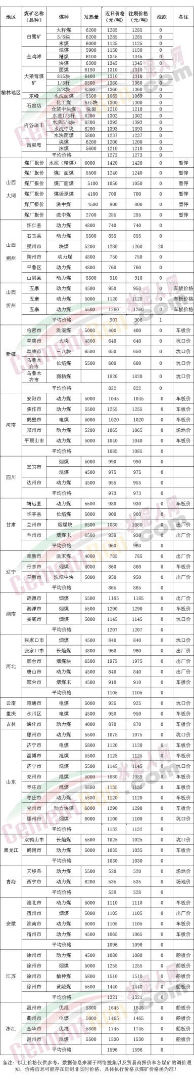 各地區(qū)煤炭報(bào)價(jià)