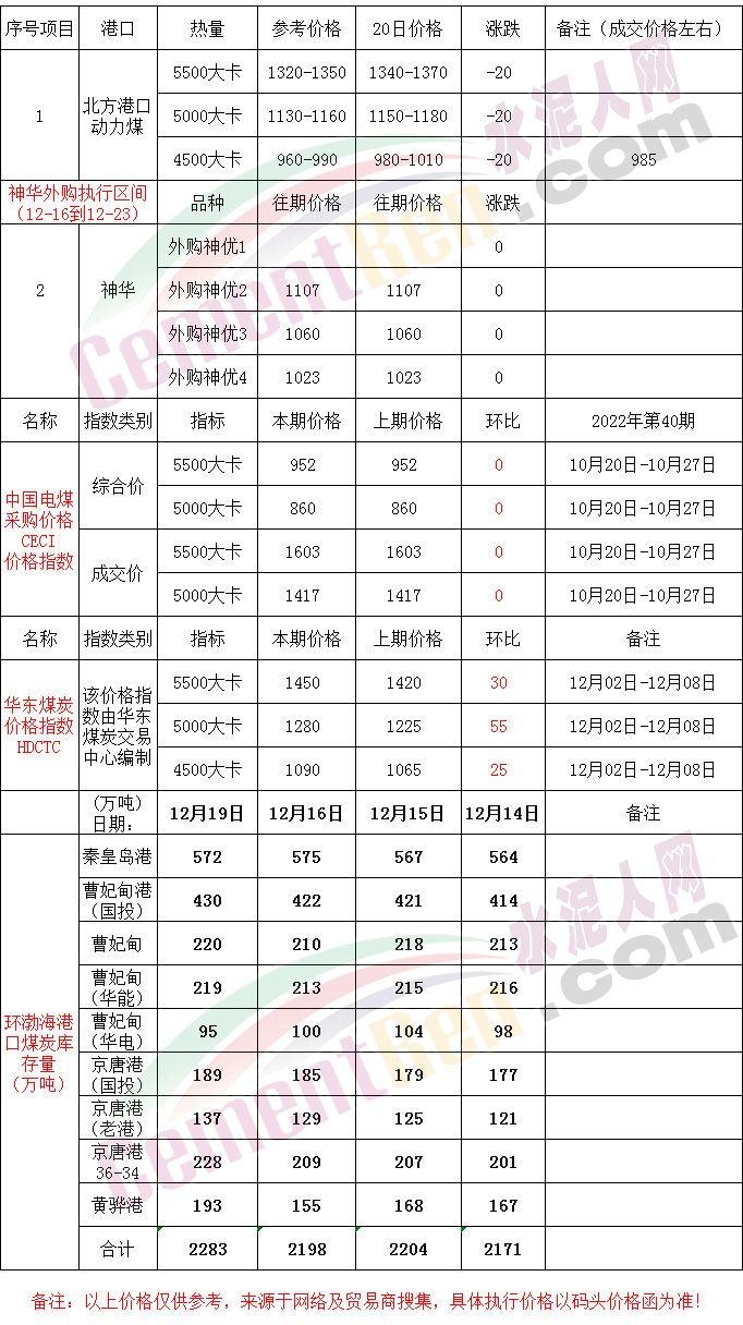 12月21日全國(guó)港口煤炭?jī)r(jià)格