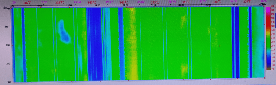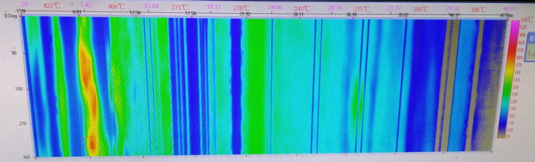 圖5 HJ節能燃燒器窯筒體溫度分布2