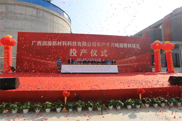 圖:2022年12月21日,廣西瀚潤(rùn)新材料科技有限公司年產(chǎn)千萬(wàn)噸骨料項(xiàng)目投產(chǎn)