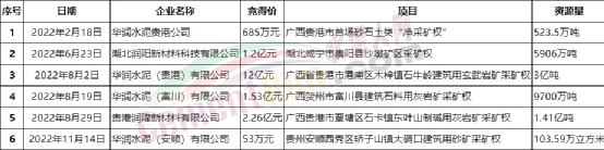 2022年華潤(rùn)水泥競(jìng)得砂石礦權(quán)及項(xiàng)目投產(chǎn)信息