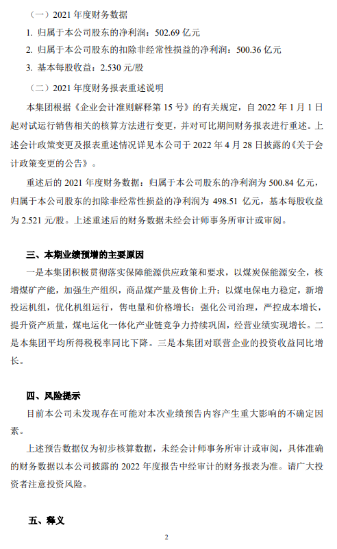 陜西煤業(yè):2022年度受市場供求關(guān)系影響,煤炭價格高位運行,公司煤炭售價同比大幅上漲;隆基綠能會計核算方法變更以及處置部分隆基綠能股份獲得投資收益;2022年同一控制下收購陜西彬長礦業(yè)集團(tuán)有限公司,公司業(yè)績比上年大幅增加。