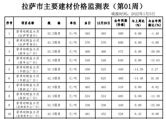 2022年內(nèi)各大水泥企業(yè)多次推漲,以止跌穩(wěn)價(jià),推了一年也沒(méi)能將價(jià)格推到2021年末的水平線(xiàn)。一直處于市場(chǎng)價(jià)格相對(duì)高位的西藏區(qū)域,水泥價(jià)格也一改往年高不可攀的態(tài)勢(shì),一路下跌。西藏發(fā)改委數(shù)據(jù)顯示, 2022年10月初,42.5標(biāo)號(hào)水泥報(bào)價(jià)在528~630元/噸之間。同年1月初42.5標(biāo)號(hào)水泥報(bào)價(jià)在481-570元/噸之間。高低價(jià)差在149元/噸,1月至10月跌幅約在9%左右。與以往年份900元/噸以上的市場(chǎng)價(jià)格相差較大。