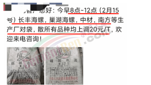 2月15日,長(zhǎng)豐海螺、巢湖海螺、中材,南方等水泥廠對(duì)袋、散所有品種水泥上調(diào)20元/噸。