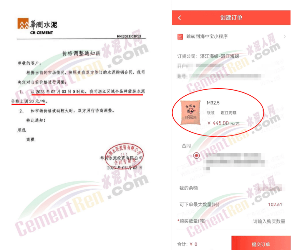 上述區域主要品牌企業在本月9日前后曾先后通知上調水泥價格。其中華潤水泥通知稱,從2月9日起,上調東莞、深圳、廣州東、惠州各區域全品種散裝水泥價格10元/噸。