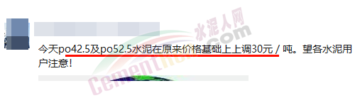 華東水泥通知,因水泥原料上漲50元/噸左右,工廠實際出廠價調整為M32.5水泥240元/噸,PC42.5水泥300元/噸,P.O42.5水泥310元/噸。