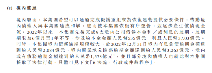但鑒于境內債務量巨大、境外債務復雜,加之汽車、物業板塊增量有限,恒大重生之路依然困難重重。截至2021年末,恒大集團總資產僅1.70萬億元,但總負債卻有1.90萬億元,比總資產還高出近2000億元,已經是資不抵債。截至2022年末,恒大集團境內有息負債逾期2084億元,境內商票逾期3263億元,境內或有債務逾期1573億元,三項合計6920億元。
